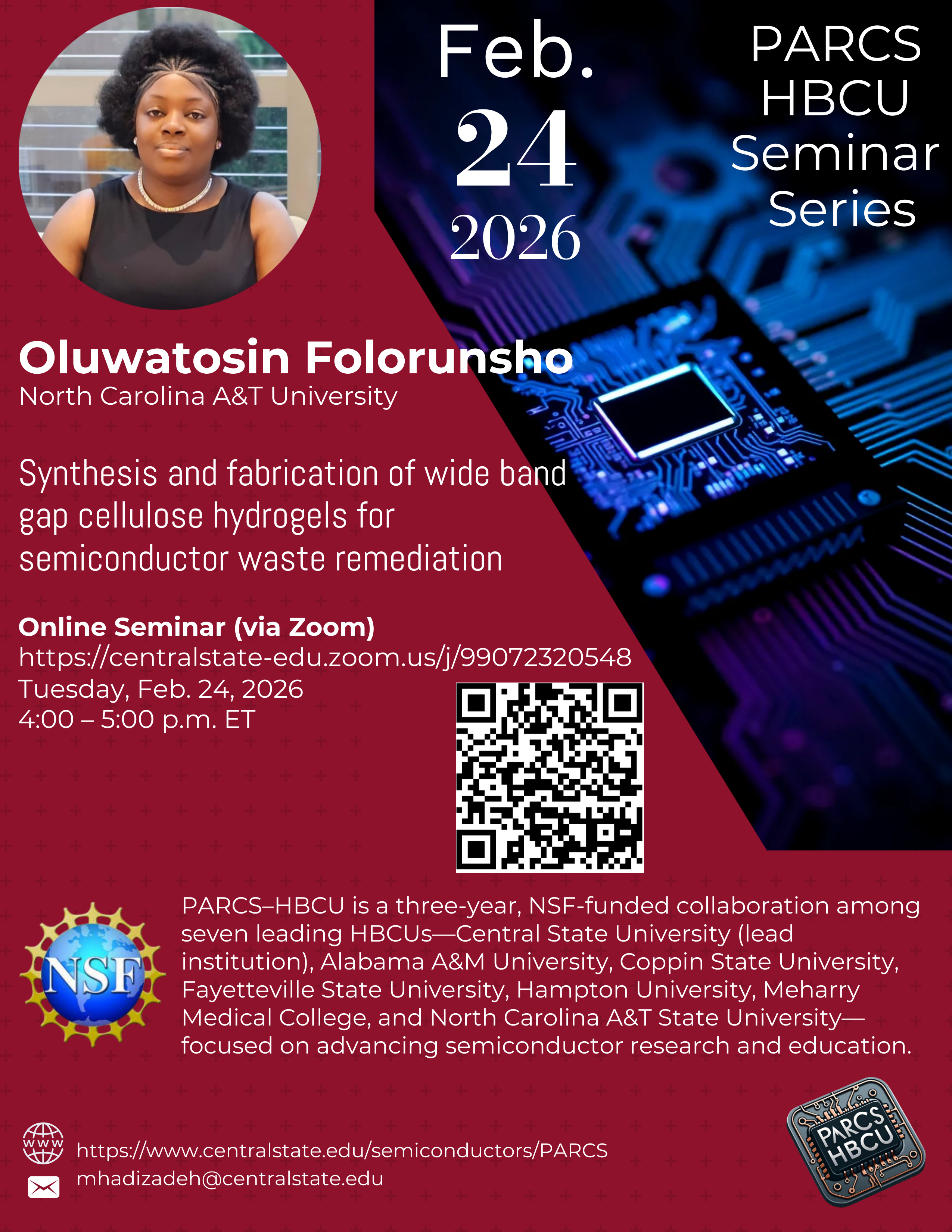 PARCS-HBCU Seminar Series: Synthesis and fabrication of wide band gap cellulose hydrogels for semiconductor waste remediation